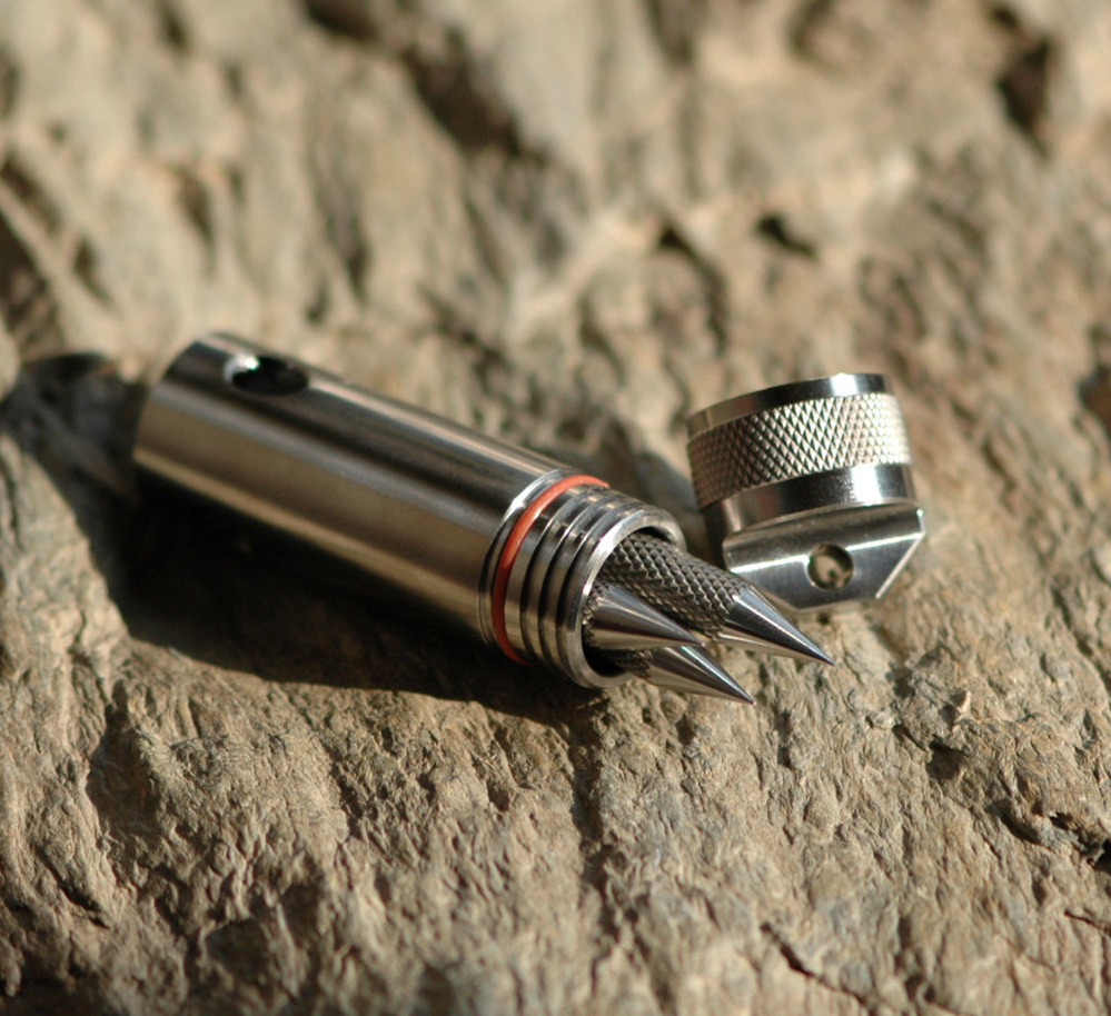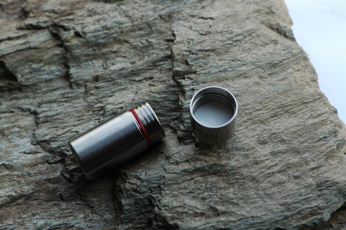 The Machined Capsule is milled from solid titanium. Extremely high quality capable of carry goods in the harshest of conditions. Ideal for carrying pills/medicine, first aid equipment, fire starters or cash. Features:...