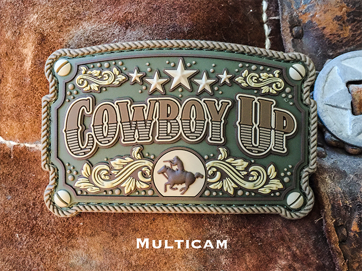 For the Cowboy-feelin' Operator, cuz Operators come in all flavors. 3.5" x 2.27" with hook Velcro sewn on the back.
